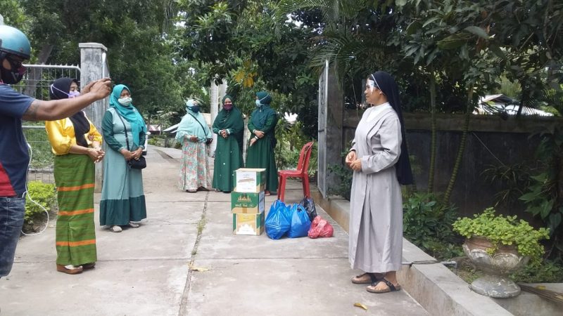Maumere, NTTPedia.id,- Muslimat Nahdatul Ulama (NU) kabupaten Sikka memberikan bantuan untuk Kongregasi suster-suster Fransiska Hati Kudus Yesus dan Maria, Kamis, 14/01/2021. Bantuan tersebut diberikan ketika Muslimat NU mendapat kabar Susteran sedang dikarantina akibat salah satu suster terkena Covid-19.