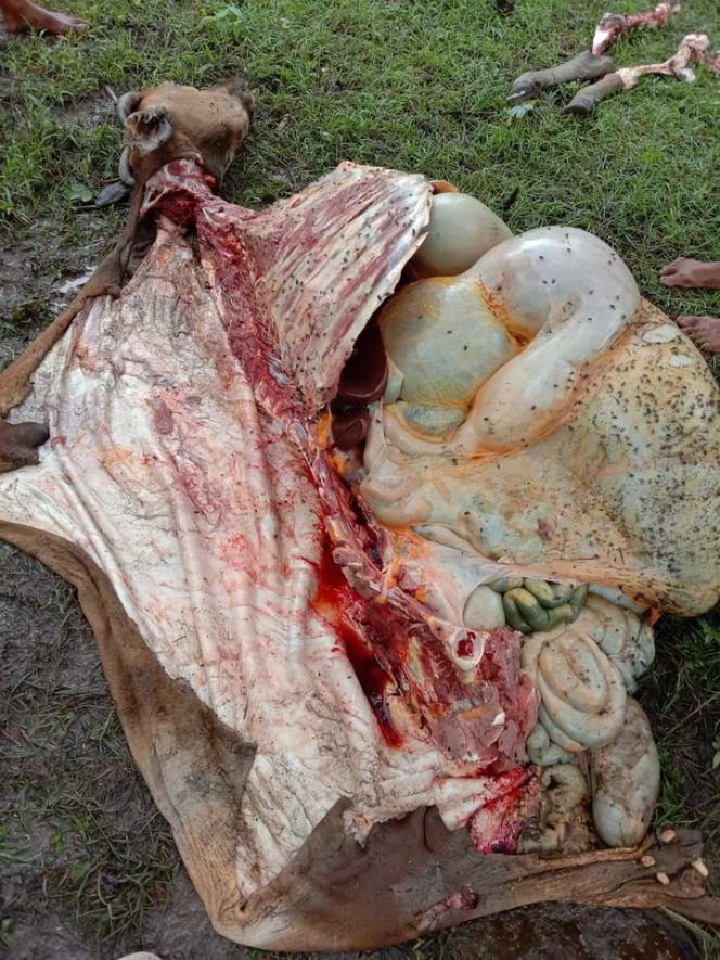 Edannya kawanan pencuri ini hanya memotong sapi itu mengambil isinya dan meninggalkan kulit sapi, tulang dan jeroannya di lokasi gereja. Mereka membungkus kembali kulit sapi dalam tulang sehingga nampak sapi sementara tertidur.