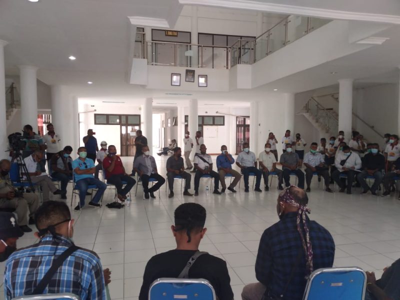 setelah melalui negosiasi yang cukup alot dan difasilitasi aparat keamanan Polres Lembata, sekitar Pukul 13.43 WITA sebanyak 18 perwakilan massa aksi akhirnya bertemu dengan 13 perwakilan anggota DPRD Lembata yang hadir saat itu di loby gedung.