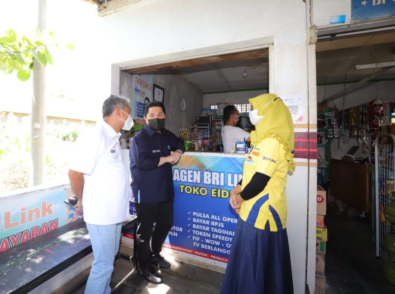 Menteri BUMN RI Erick Thohir dan Direktur Utama BRI Sunarso pada kunjungan kerja kali ini selain mendukung program vaksinasi nasional, juga melakukan mendatangi langsung klaster usaha binaan, kesuksesan Agen BRILink, penyaluran BPUM, hingga menyerahkan bantuan CSR.