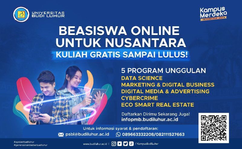 Pandemi COVID-19 memberikan dampak yang luar biasa bagi perekonomian masyarakat. Dengan Paket Program Kuliah Merdeka (PPKM), Universitas Budi Luhur memberikan beasiswa gratis sampai lulus kuliah.