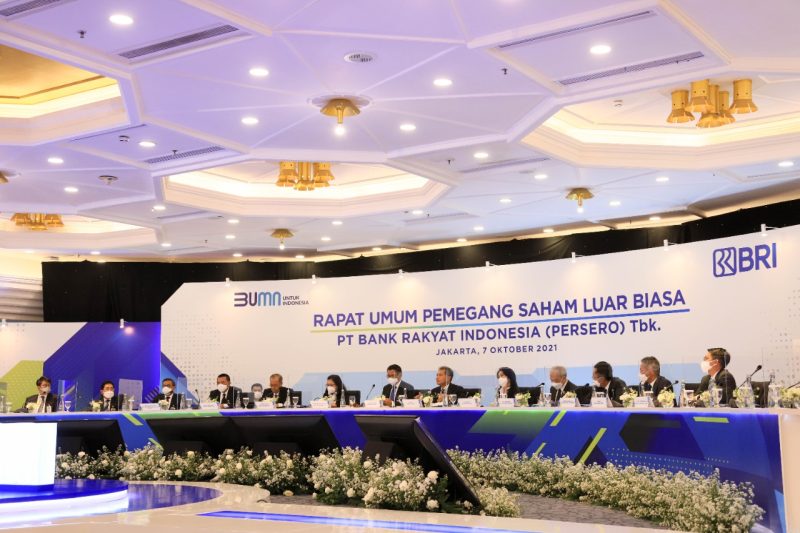 Jakarta, NTTPedia.id,– PT. Bank Rakyat Indonesia (Persero) Tbk menggelar Rapat Umum Pemegang Saham Luar Biasa (RUPSLB) pada Kamis (07/10) di Jakarta. Dalam RUPSLB tersebut, perseroan menetapkan dua agenda, pertama adalah mengukuhan pemberlakuan Peraturan Menteri BUMN RI Nomor PER-05/MBU/04/2021 tanggal 8 April 2021 tentang Program Tanggung Jawab Sosial dan Lingkungan Badan Usaha Milik Negara. Kedua, mengenai perubahan susunan pengurus perseroan.