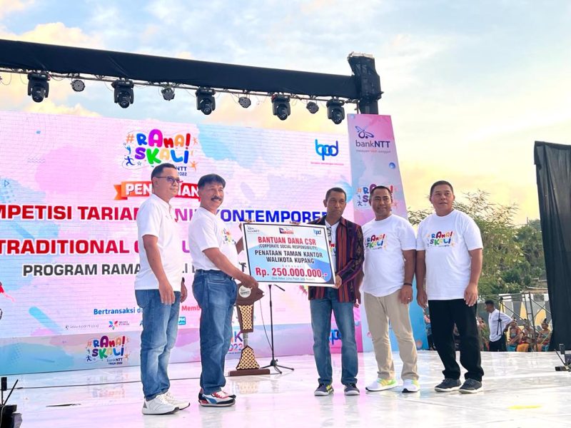 Untuk diketahui, penyerahan CSR itu berlangsung pada moment Penjurian Kompetisi Tarian Etnik Kontemporer dan Traditional Costume Carnival Program Ramai Skali Bank NTT 2022. Suasana sore itu agak berbeda karena ada juga mini expo aneka produk UMKM binaan Bank NTT, yang seluruh transaksinya menggunakan QRIS Bank NTT.