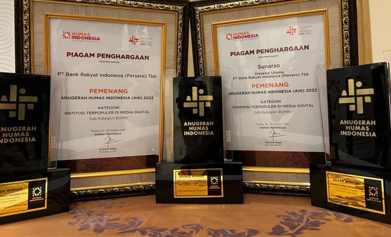 Kemudian empat di antaranya BRI Sebagai Institusi Terpopuler di Media Digital 2022, Kategori Media Internal Sub-Kategori Video Profile Terbaik, Kategori Kanal Digital Sub-Kategori Website Terbaik, dan Kategori Kanal Digital Sub-Kategori Media Sosial Youtube Terbaik.