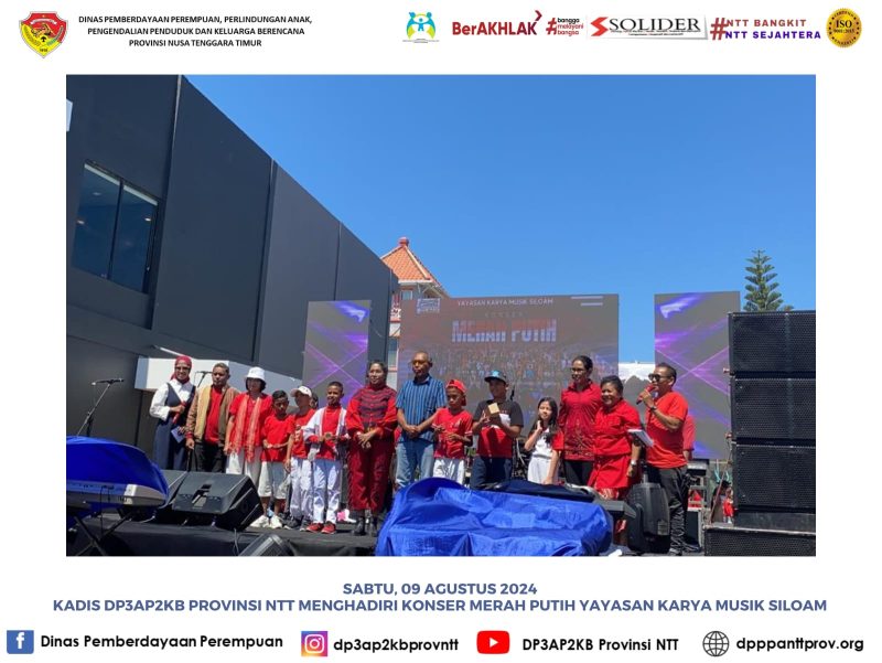 Kupang, NTTPedia.id,- Kepala Dinas Pemberdayaan Perempuan, Perlindungan Anak, Pengendalian Penduduk dan Keluarga Berencana (DP3AP2KB) Provinsi Nusa Tenggara Timur, Ruth D Laiskodat menghadiri Konser Musik Merah Putih. Konser yang diselenggarakan Yayasan Karya Musik Siloam ini berlangsung di pelataran Paradox Coffee & Roastery, Jalan W.J. Lalamentik No.123, Oebufu, Kecamatan Oebobo, Kota Kupang, Sabtu 09 Agustus 2024.