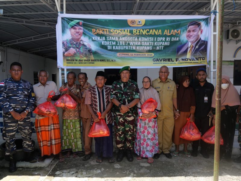 Kupang, NTTPedia.id, – Anggota Komisi I DPR RI Gavriel Novanto melalui stafnya di Kupang Sokan Teibang gandeng Kodim 1604/Kupang menyalurkan bantuan paket sembako, kepada masyarakat yang terdampak banjir rob di Desa Tablolong, Kecamatan Kupang Barat, Kabupaten Kupang, Selasa (11/2).