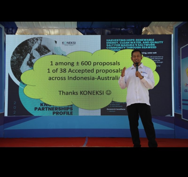 Wakil Menteri menyoroti penelitian “Menuai Harapan” yang merupakan proyek kolaboratif melibatkan Universitas Trunojoyo Madura (UTM) bersama Newcastle University, RMIT University, dan Kementerian Kelautan dan Perikanan (KKP), dengan dukungan dari Kemitraan Pengetahuan (KONEKSI). Proyek ini lahir untuk mengatasi tantangan yang dihadapi petani garam, seperti perubahan iklim, fluktuasi harga, dan minimnya akses teknologi.