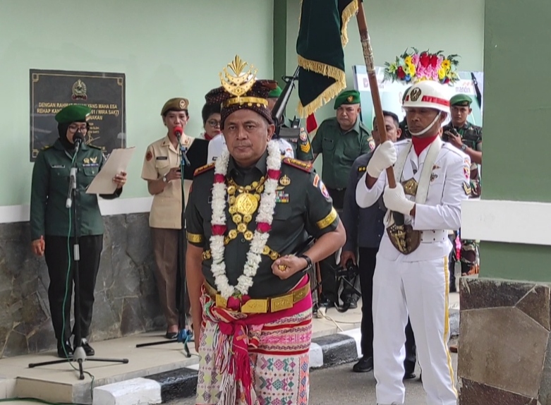 Kupang, NTTPedia.id – Danrem 161/Wirasakti Kupang Kolonel Inf. Hendro Cahyono tiba di Makorem, Kamis (31/7/2025) siang. Danrem bersama istri disambut dengan upacara adat natoni dan tarian.