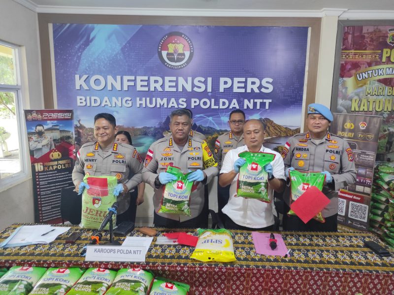 “Barang bukti yang diamankan antara lain 1,79 ton beras berbagai kemasan merek Topi Koki yang telah rusak dan dokumen pendukung lainnya,” jelas Dirreskrimsus Polda NTT Kombes Pol Hans Rachmatulloh Irawan.
