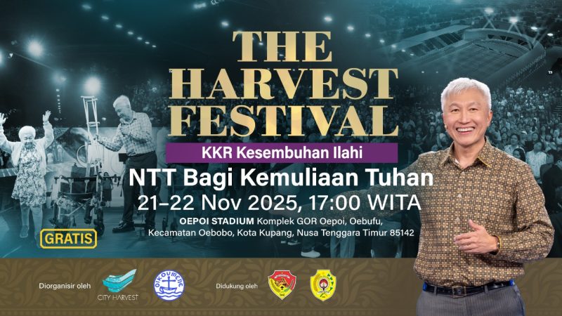 Kupang, NTTPedia.id,- City Harvest Church (CHC) Singapore mengumumkan akan menggelar Kebaktian Kesembuhan Ilahi bertajuk The Harvest Festival atau Festival Tuaian di Kota Kupang, Nusa Tenggara Timur (NTT). Ibadah akbar ini dijadwalkan berlangsung selama dua hari, pada Kamis–Jumat, 21–22 November 2025, mulai pukul 17.00 WITA di Stadion Oepoi, Kupang.