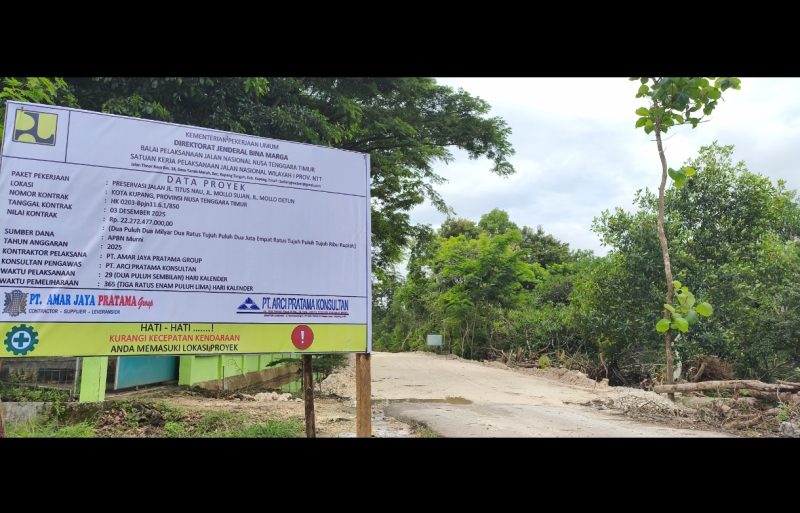 Paket Preservasi Jalan Jl. Titus Nua, Jl. Mollo Suan, dan Jl. Mollo Oetun yang dilaksanakan oleh Balai Pelaksanaan Jalan Nasional (BPJN) NTT di bawah Kementerian Pekerjaan Umum. Proyek ini memiliki nilai kontrak sebesar Rp22,27 miliar yang bersumber dari APBN Tahun Anggaran 2025, dengan pelaksana pekerjaan PT Amar Jaya Pratama Group dan konsultan pengawas PT Arci Pratama Konsultan.
