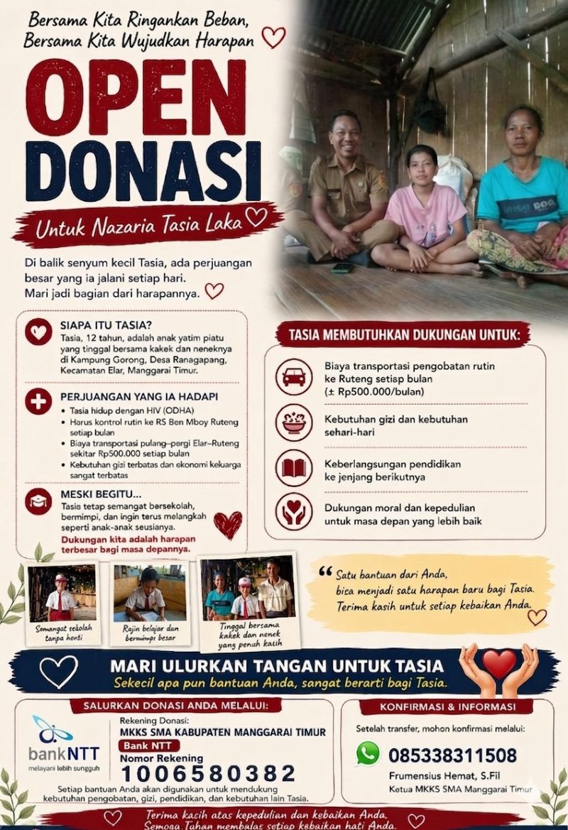 Borong, NTTPedia.id,– Kepedulian insan pendidikan di Nusa Tenggara Timur kembali terlihat melalui aksi gotong royong membantu seorang anak sekolah dasar berinisial NTL yang tengah berjuang melawan HIV dan TB paru.